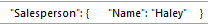 In the field where you want to show the salesperson name, you only need to add the second half of the expression we referenced for the DataSource = Fields.Order.Salesperson.Name.